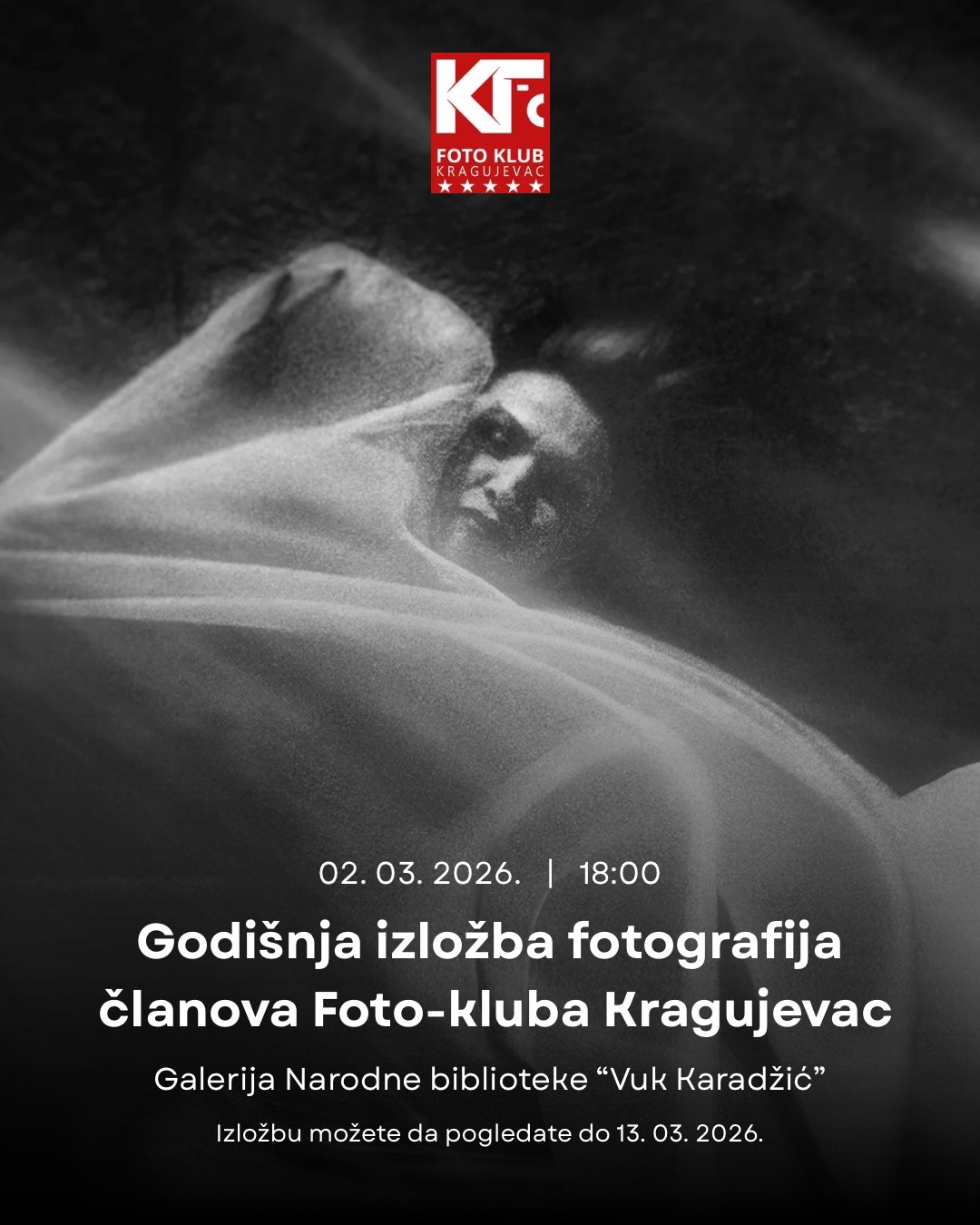 У понедељак. 2. марта, у 18 часова, у Галерији Народне библиотеке “Вук Караџић” Крагујевац, биће отворена Годишња изложба фотографија чланова Фото-клуба Крагујевац. На изложби ће се представити 22 аутора фотографије са укупно 77 фотографија. Фото-клуб Крагујевац обележава 12 година  постојања и ангажована у промовисању културе уметничке фотографије у земљи  иностранству.