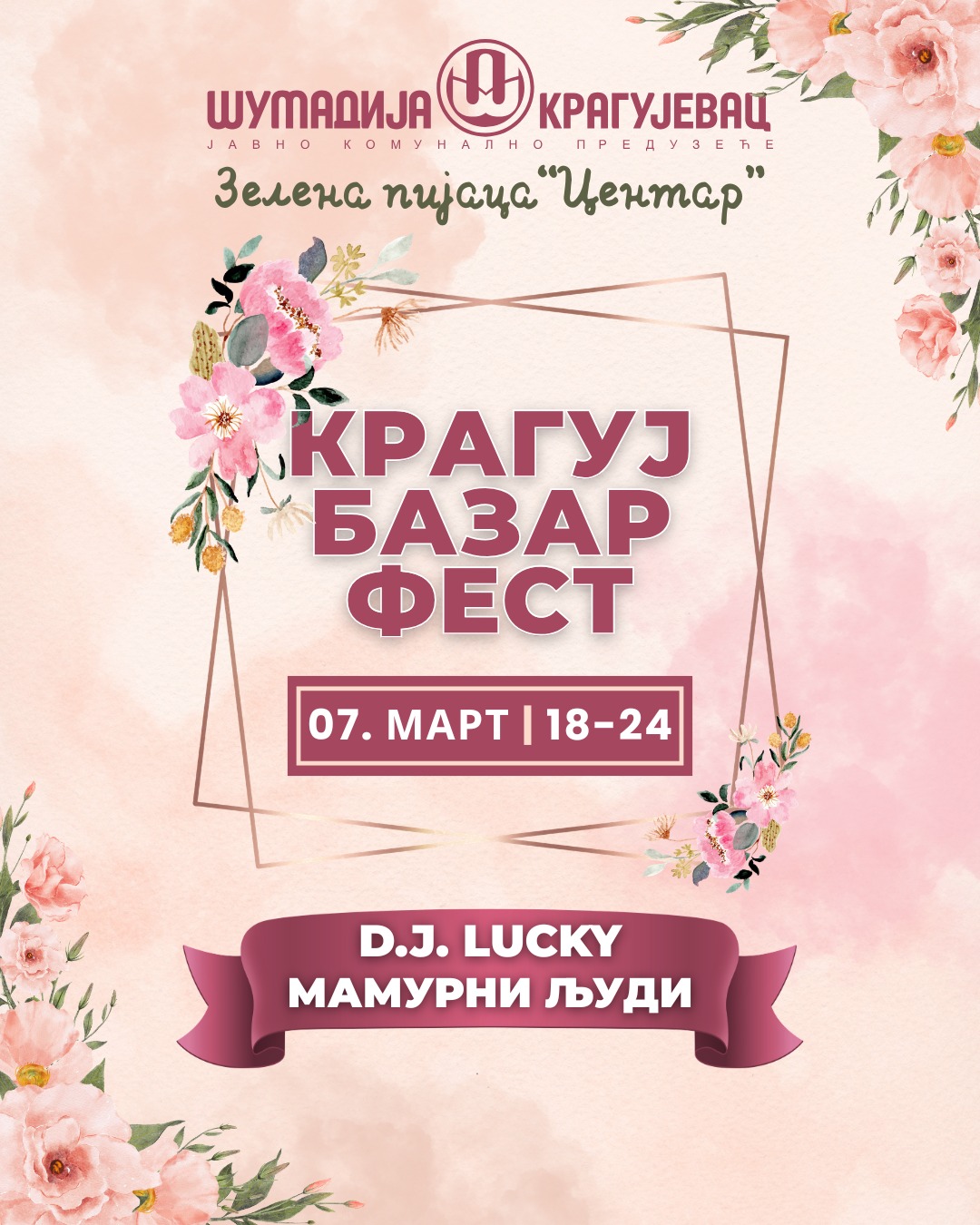 ЈКП Шумадија Крагујевац у суботу 7. марта 2026. године на зеленој пијаци "Центар" организује јубиларни X Крагуј базар фест у периоду од 18 до 24 часа. Нашим суграђанима ће се представити више од 200 излагача из целе Србије са широком понудом вина, ракије и крафт пива, домаћим производима, сиревима и гастрономским специјалитетима, производима од меда и лековитог биља, рукотворинама, природном козметиком и уникатним поклонима. Ово је идеална прилика да пронађете савршен поклон за 8. март и подржите домаће произвођаче. У музичком програму наступиће D.J. Lucky и бенд Мамурни људи.